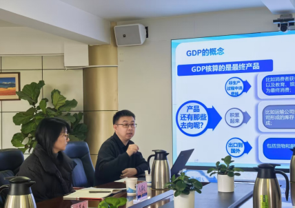 座谈会上,核算处王处长详细讲解了GDP核算在实际工作中如何适配复杂经济环境,结合社会经济发展中的各类变量,阐释了《宏观经济学》中的理论模型如何在现实中进行灵活调整。同学们踊跃提问,围绕“GDP核算数据如何支撑宏观经济调控政策制定”“消费、投资等统计数据与课程理论模型的对应关系”“数智技术在宏观经济监测中的应用边界”等问题与专家深入探讨。廖传翔同学在交流中感悟到:“不仅看到了理论在实践中的巧思,更了解到实际工作中的困难,以及国家宏观经济政策在基层的落地过程”。姚思睿同学纠正了此前的认知偏差:“原来GDP核算不是年末简单加总各省数据,而是有季度核算、年度核算、经济普查相互配合的缜密系统”,这种理论与实践的碰撞,让同学们对《宏观经济学》中“国民收入核算体系”的理解更加透彻。