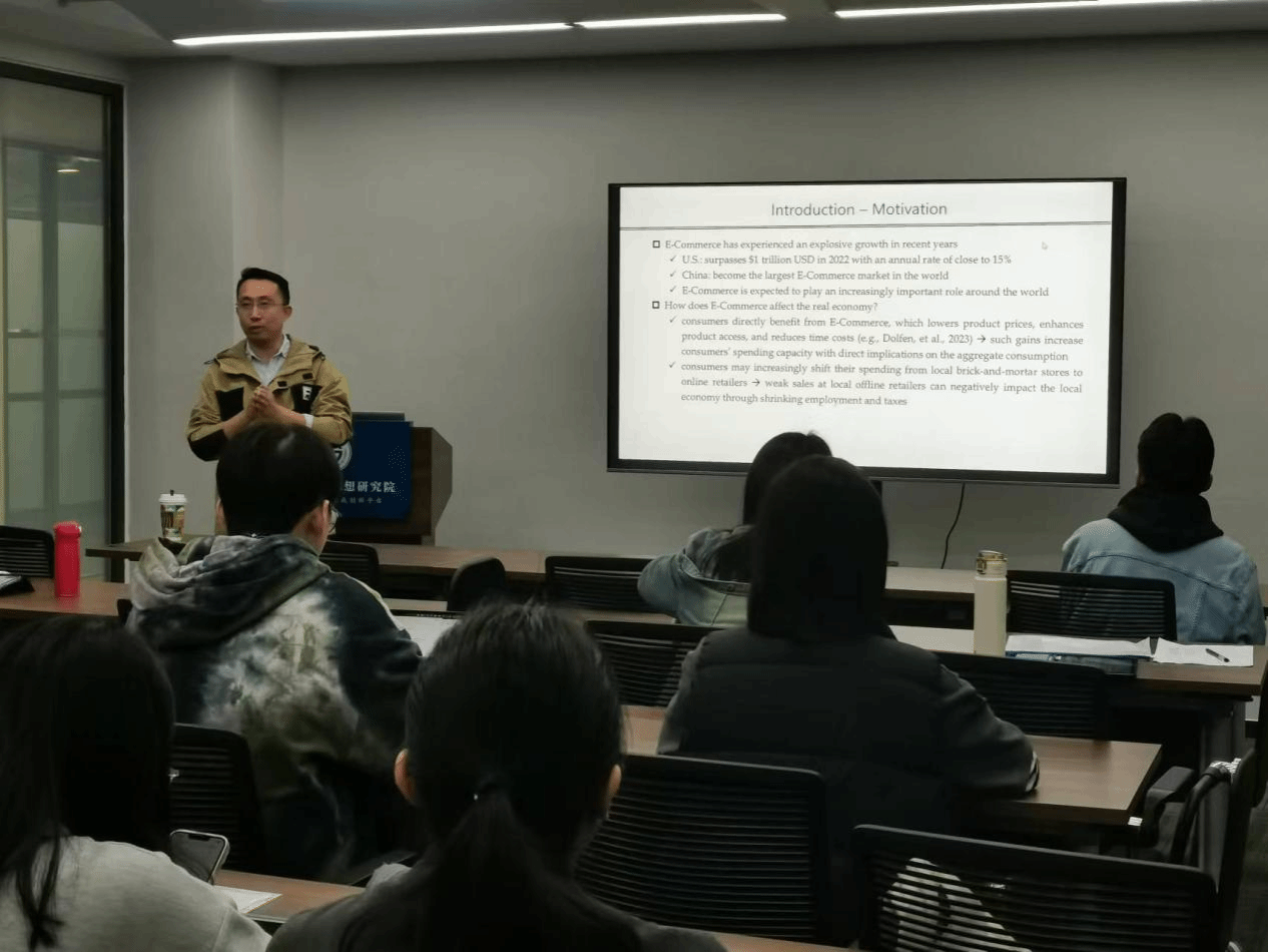 在讲座中,文强首先阐述了研究的背景,电子商务的迅猛发展对线下消费模式产生了显著影响,深入研究这一现象的具体机制,对于理解消费者行为和促进消费增长具有重要的现实意义。然后,文强详细说明了所采用的数据集,并介绍了数据处理的过程,精确分析双十一期间线下消费的真实变化。